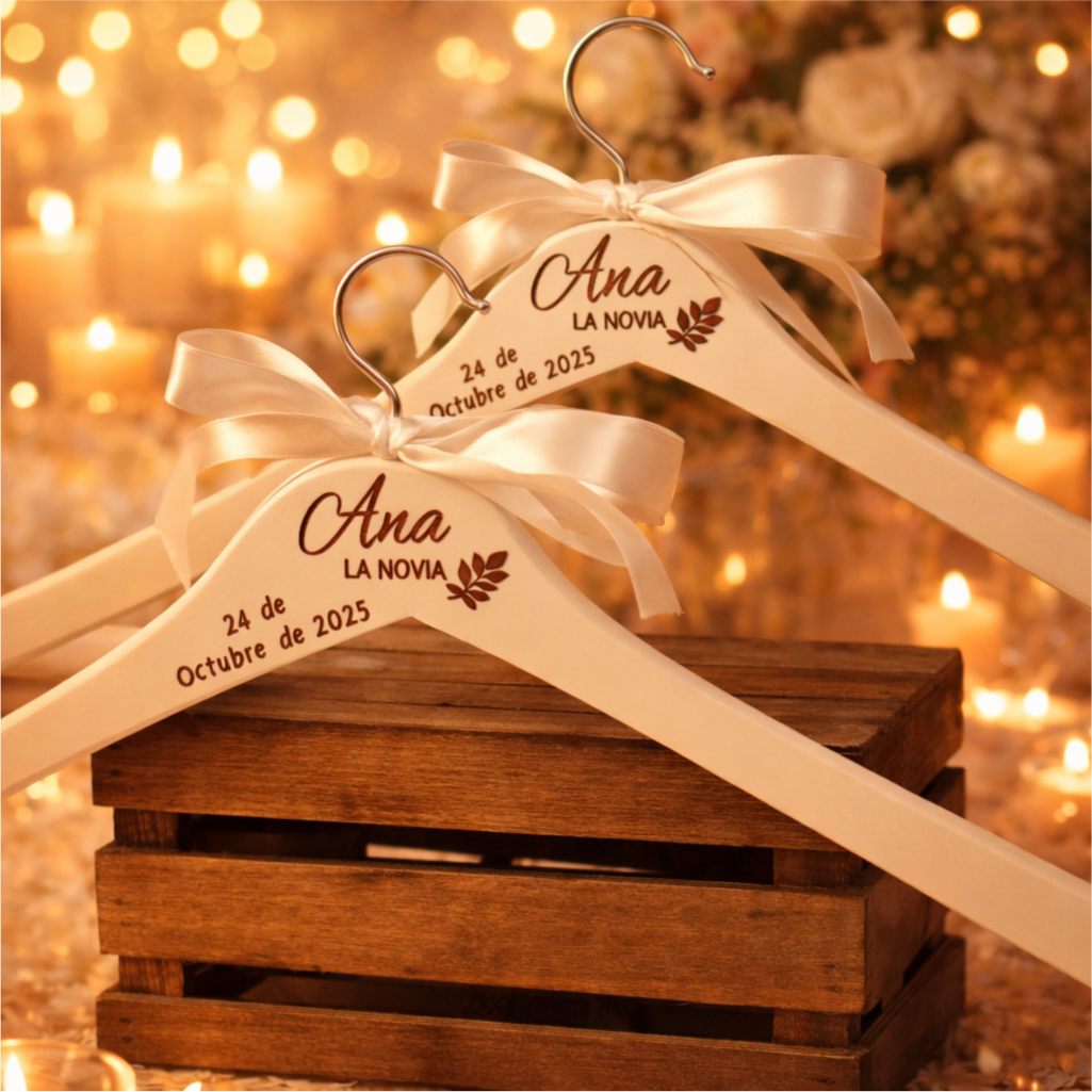 Celebra el amor y los momentos que perduran con nuestra percha personalizada, donde cada detalle cuenta una historia de amor eterno.